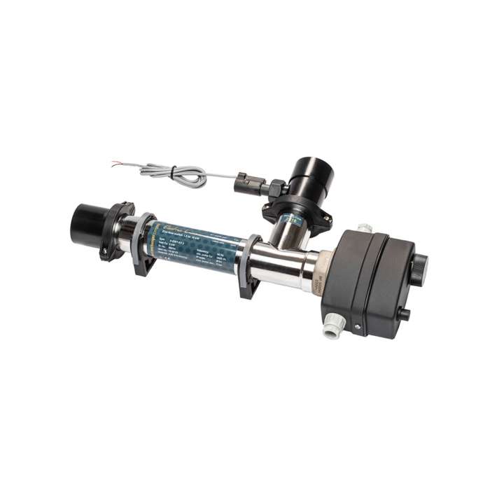 Electric heat exchangers with control thermostat 0-40° C, safety thermostat 50° C, flow switch for low water protection and highly corrosion proof heating element made out of Incoloy 825, are extremely versatile – to heat swimming pools, whirlpools, and similar facilities. To connect them to the water circuit, two new and innovative gluing sockets, D. 50, have been specifically developed. The flow switch needs to be screwed into one of the two gluing sockets. This way, the flow switch can be positioned at the entrance or the exit of the heat exchanger. Another advantage is that during maintenance or repair, the flow switch doesn’t have to be removed and is protected in the piping. They work perfectly for permanent and mobile facilities. You can expect product longevity if the safety and installation instructions are closely followed.