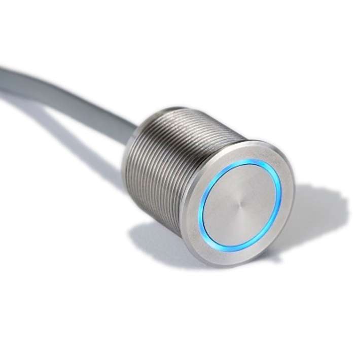 Stainsteel piezoelectric key IP68 cable 25 m for high performances at long distances. Specific for marine application and wellness areas. Power supply 12-24V with illuminated ring (3 choices for led color connecting the proper cable) .